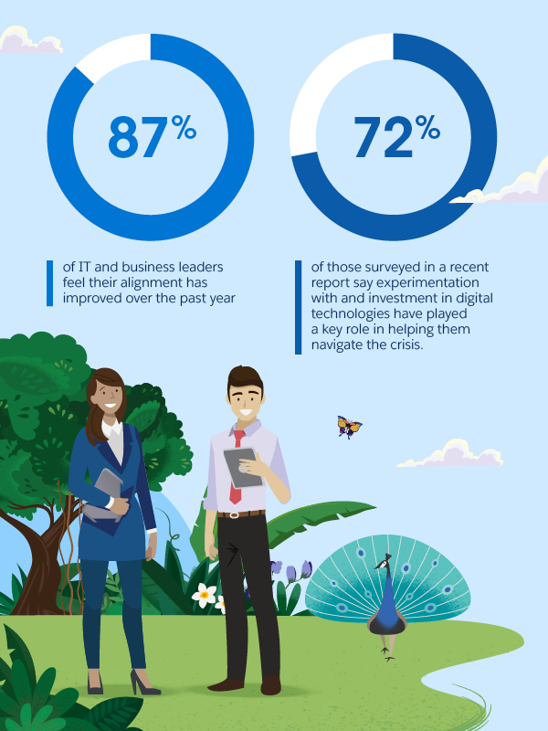 As businesses work to obtain their footing in a changing world, most (87%) IT and business leaders feel their alignment has improved over the past year. For example, INSEAD CIO Mr. Choo Tatt Saw knows increasing employee productivity means better customer service. “MuleSoft’s Anypoint Platform’s API capabilities enabled us to implement automated scheduling and course bookings — improving the efficiency and productivity of our staff. Now, they can focus on higher value tasks instead of manual work.” Additionally, connecting systems through one integrated platform enabled INSEAD to provide a 360-degree view of their data, which in turn powered innovation and cut down on development time from three months to two days.