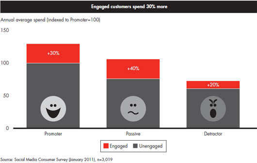 Direct communication with customers – and building a personalized profile of someone to understand their likes/dislikes – is key to a long-lasting and profitable relationship. This is borne out by a report by Bain & Company which establishes that customers who are engaged on social media spend between 20 and 40 per cent more.
