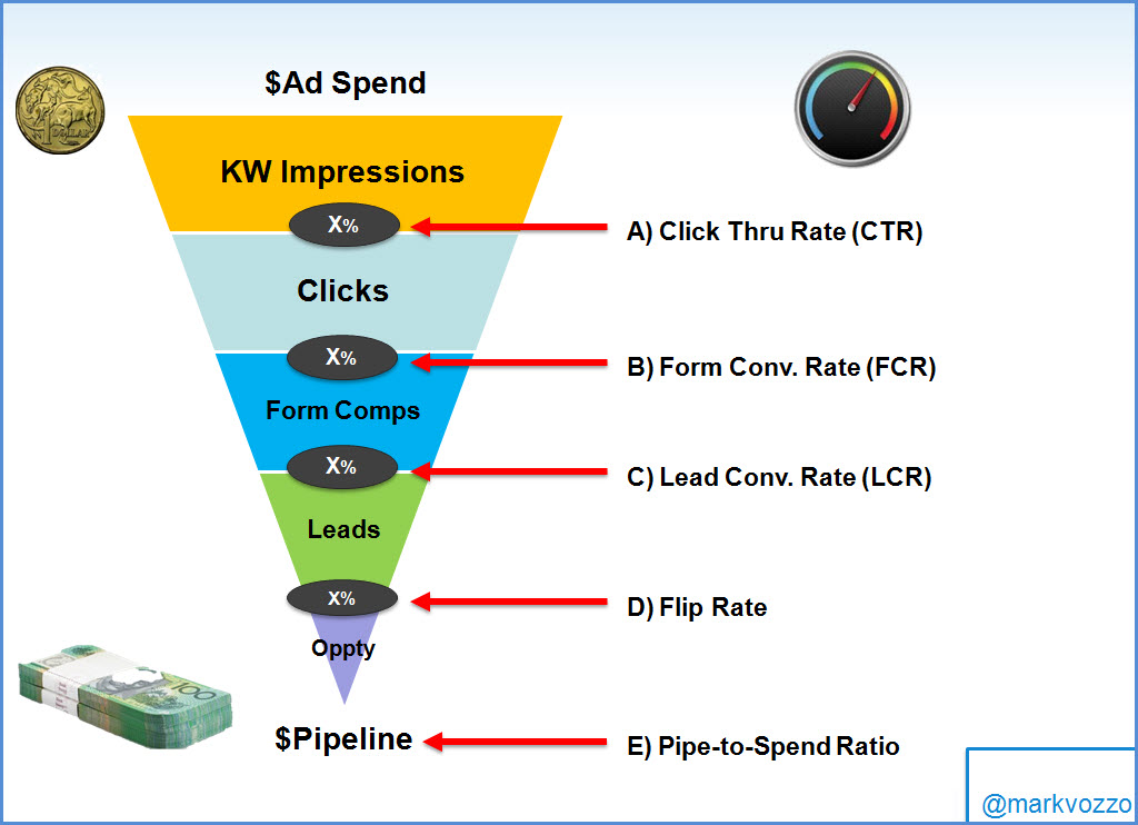 It wasn't until I joined Salesforce.com, my life as a search marketer has changed forever. I was now able to measure each and every keyword I was buying down to leads and pipeline delivered to the business (see below).