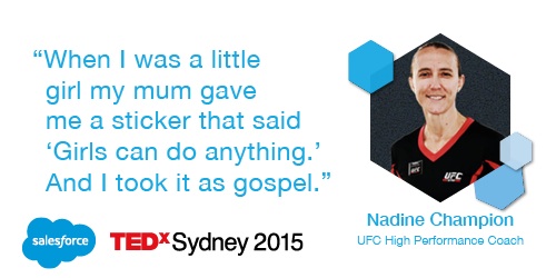 Probably the longest lasting impression anyone lucky enough to enjoy this year’s TEDx will remember was the sight of a brave, psyched up Nadine Champion smashing a block of wood in half with her bare hands. Nadine’s story began very much as a female “Karate Kid” type yarn - of a determined girl obsessed with martial arts, and a wise old mentor guiding her on a path to glory and self-fulfillment. A powerful fighter - she remains undefeated - Nadine is also an inspirational speaker. But along the way her story tragically diverges from the Hollywood fairytale when she was forced to do battle with her most formidable opponent yet - Hodgkin’s Lymphoma. That fight required all the courage she could muster but she chanelled what she had learned in the ring to keep her strong. “In the ring, you have to face yourself. But you have to get into the ring first.” I don’t think I’ll ever forget that final image of her overcoming her fears to shatter a block of wood in front of 1,200 people. It serves as an inspiration for us all to face our fears.