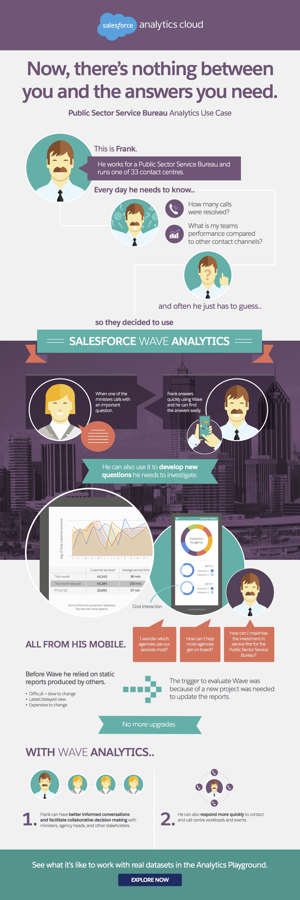 We heard from our customers that if they could only liberate insight from the data warehouse and encourage their people to have conversations empowered by data, they could do more business, and better business. Lets follow the example illustrated by the infographic below, which conveys a real conversation with a government agency.