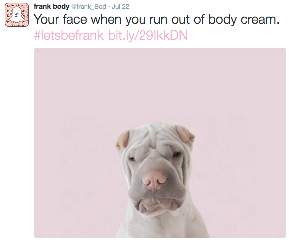 To maximise likes and clicks, consider including the key message, followed by your hashtag and link. Whatever you decide, remember to keep it short and punchy. For knockout tweets, add a photo, video or GIF to stand out in the news feed. Mixing up your content is also key. Having tweets around multiple topics, or from multiple sources works best to keep your audience interested and to continue growing your follower base. Here’s how Australian coffee-based skincare company Frank Body grabs the attention of its twitter audience: