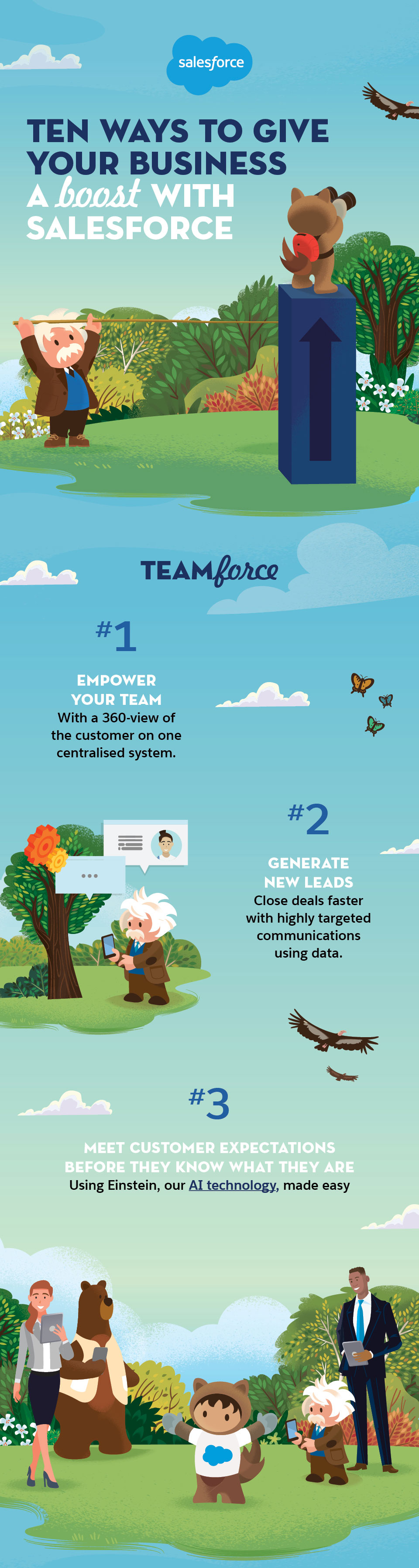 “What exactly does Salesforce do?” and “How can today’s CRMs boost my business?” These are some of the questions our Salesforce team hears every day. They’re good questions, so we thought we’d tackle them head-on, and look at ten ways Salesforce can give your business a boost.