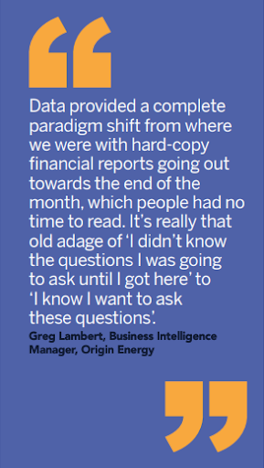 Australian businesses, such as Origin Energy and Optus, identified the relationship between access to data and better decision making.