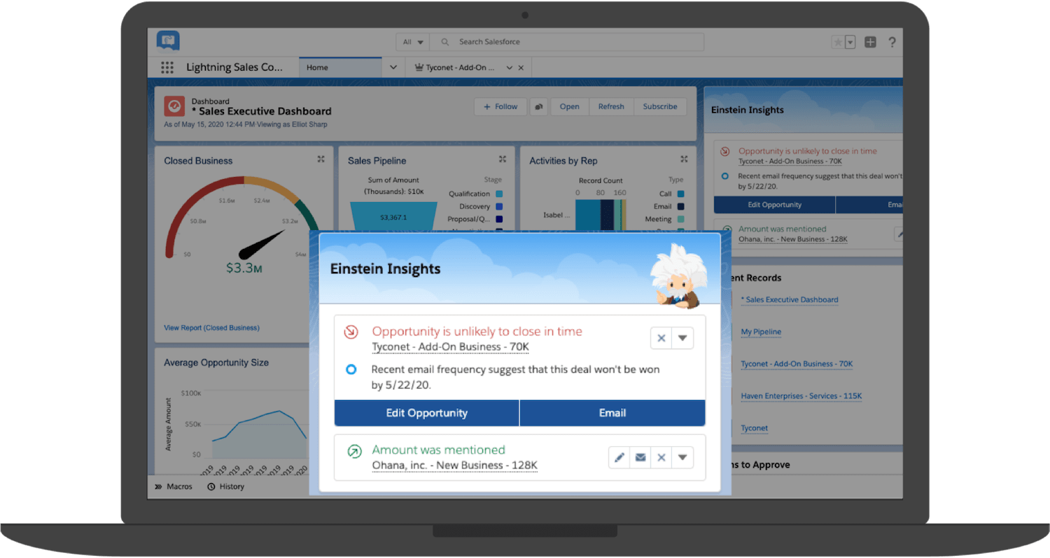 We also use artificial intelligence (also known as predictive analytics) to make our forecasts more accurate. For instance, Sales Cloud Einstein Conversation Insights can track mentions of specific terms during sales calls, then map out trends. This helps managers reconfigure sales strategies to deliver the right products in the right way to prospects and customers.