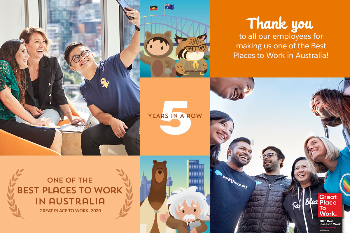Salesforce has been named Australia’s #2 Best Place to Work in the 1,000+ employees category, our 5th year running in the top 2 places. Pip Marlow shares some of the ways that, together, we’ve all built a workplace and a team that thrives whether we’re in the office or working remotely....