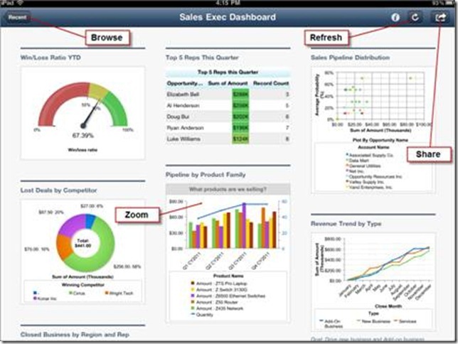 At Dreamforce’11, one of the applications launched was an iPad app, to allow iPad users to view and refresh email dashboards. Marc Benioff tweeted the news out on the Sunday before Dreamforce’11: