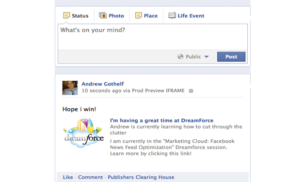 Once users share their entry into the sweepstakes, that content can gain viral lift as it appears in the Facebook News Feed, ticker and timeline:
