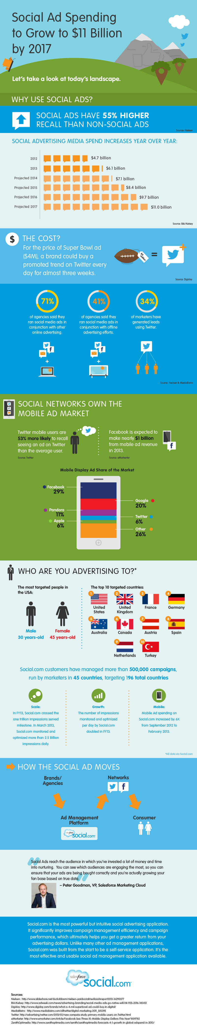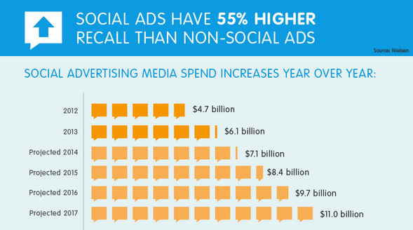 Social ads are going to be an $11 billion market by 2017, and 64% of