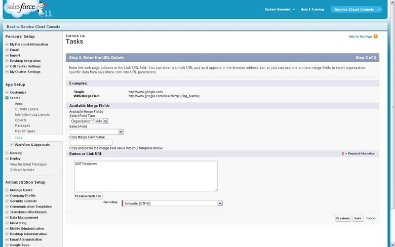 To add a Task List View tab, follow the same steps as adding a home tab. However, in step 6, set the "Button or Link URL" to /00T?isdtp=vw