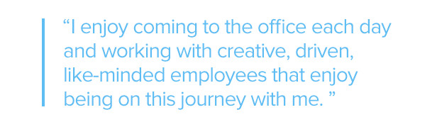 I don’t view going to work as work – I view it as my daily journey. I enjoy coming to the office each day and working with creative, driven, like-minded employees that enjoy being on this journey with me. We are a highly productive and collaborative cross-functional team.