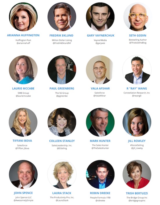 Sales Machine NYC 16 has inspirational speakers from the sales world offering insights around sales leadership, emotional intelligence, and being a self-starter. Keynote speakers include Arianna Huffington, Fredrik Eklund, Seth Godin, Gary Vaynerchuk.