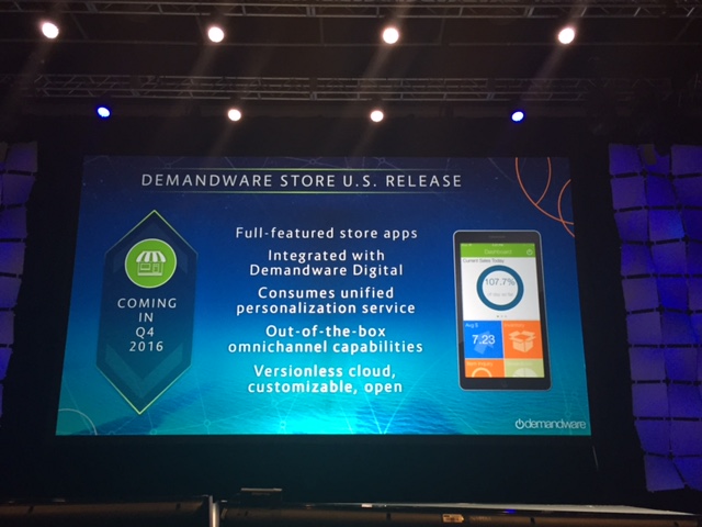 Demandware Store, which will be generally available later this year, is a point-of-sale and store operations solution enabling associates to execute transactions, returns and exchanges, wherever they are, with full tendering, inventory lookup and assisted selling capability. (See image below of recent presentation on Demandware Store)