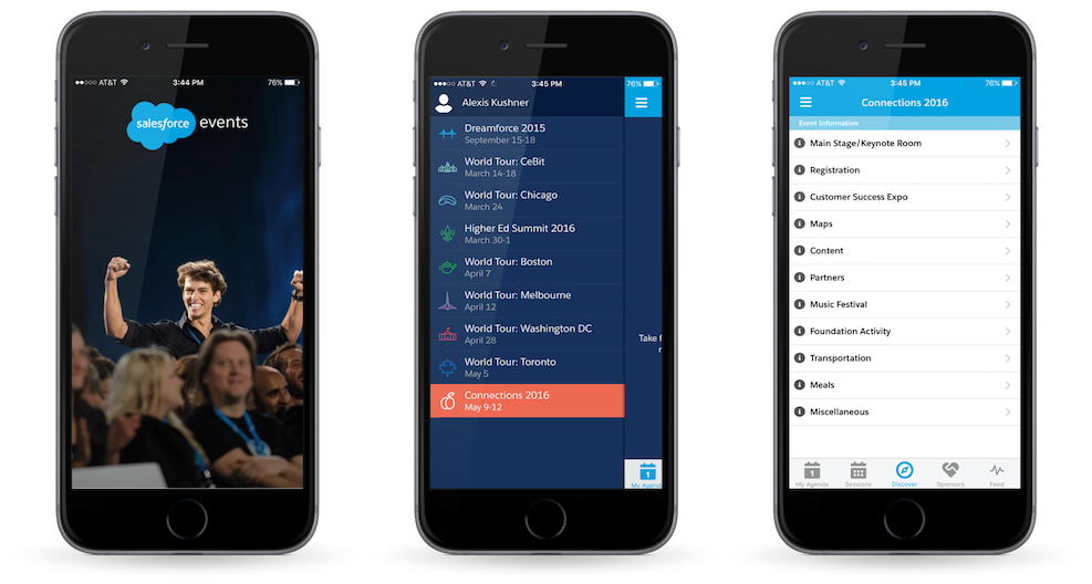 Since Dreamforce ‘15 was the biggest one yet, we at Salesforce took a fresh approach to building out a scalable mobile event app — but we only had six months to do it. The events team wanted it to be engaging and user-friendly, with robust mobile functionality. They’d make one for iOS and one for Android, with a straightforward interface for users to see sessions and create their personalized agenda for the week. Given the time constraints, they knew they’d want to focus on solid functionality and add more features to future iterations.