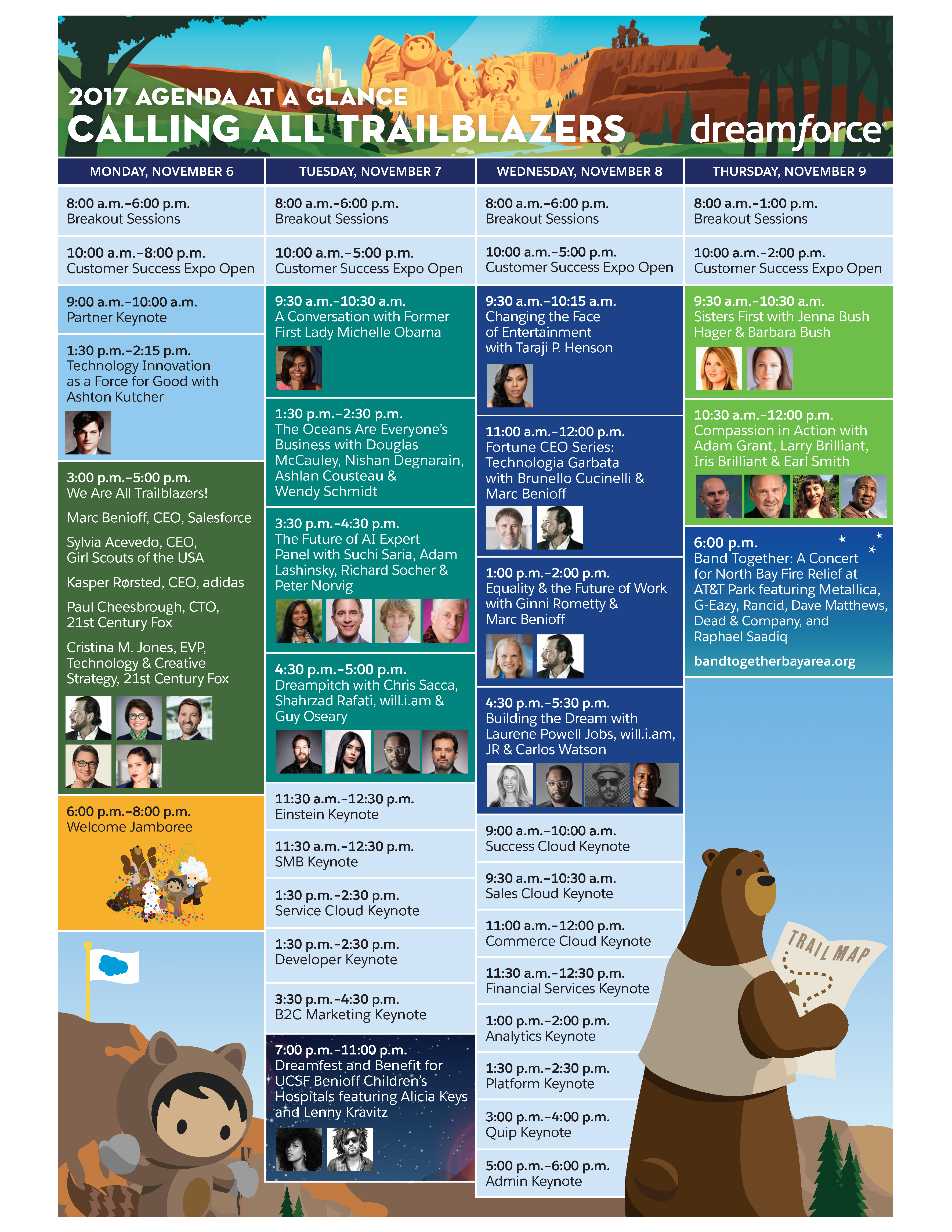 From this global stage, Salesforce will share our vision for customer success in the Fourth Industrial Revolution, and how Trailblazers are driving innovation, transforming their companies and growing their careers. We’ll unveil our latest product breakthroughs—demonstrating how cloud, artificial intelligence (AI), social, mobile and internet of things (IoT) technologies are transforming companies and enabling them to get closer to their customers—and innovations fueled by our vibrant partner ecosystem. Every day, attendees will have a new opportunity to learn about Salesforce’s commitment to equality through sessions and activities focused on workforce development, education, environmental sustainability and philanthropy. Attendees will also have a number of opportunities to give back to the community onsite and our annual Dreamfest concert—featuring Grammy award winners Alicia Keys and Lenny Kravitz—is expected to raise $10 million for UCSF Benioff Children’s Hospitals. In addition, this year, Salesforce is donating our Dreamfest stage and sponsoring the Band Together Bay Area Concert on November 9 to raise money for the wine country fire relief efforts.