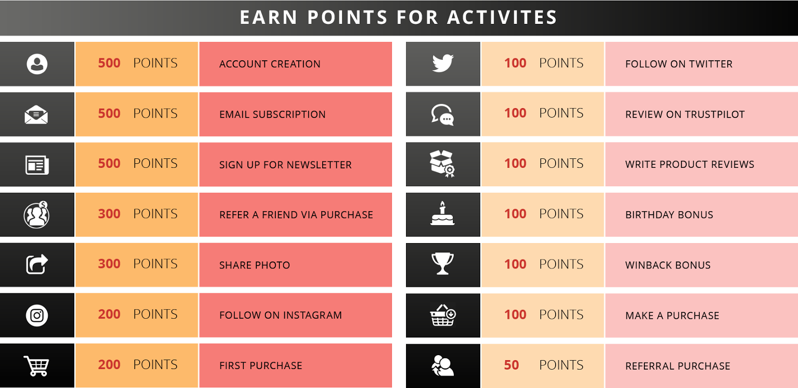Therefore, Predator Nutrition decided to award points not just for purchases but also for referrals, reviews, newsletter signups, Instagram and Twitter follows.