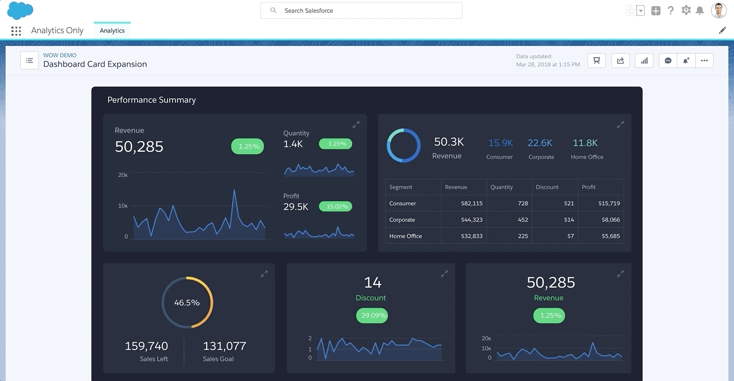 The conventional wisdom is that when it comes to analytics, customers are faced with a choice: exploring data at SCALE or getting actionable insights FAST. At Salesforce, we believe our Trailblazers should have it all. We're challenging the status quo and changing the way customers think about analytics by providing a complete set of analytics capabilities: from basic reports and dashboards; to the advanced Einstein Analytics platform that provides line of business analytics apps and a platform to customize with external data; to AI-powered Einstein Discovery, bringing predictive and prescriptive recommendations to every business process.