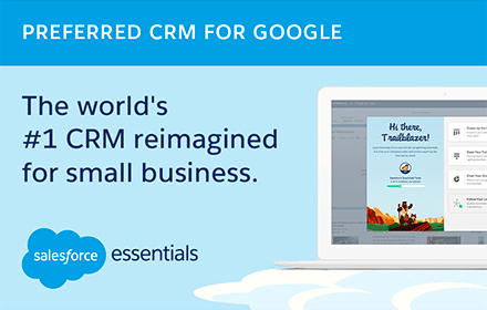 Salesforce Essentials, the out-of-the-box CRM for small businesses, will now be listed in the G Suite and Google Cloud Platform marketplaces, making it easier for every small business to tap into the power of Salesforce’s #1 CRM platform.