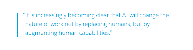 It is increasingly becoming clear that AI will change the nature of work not by replacing humans but by augmenting human capabilities.