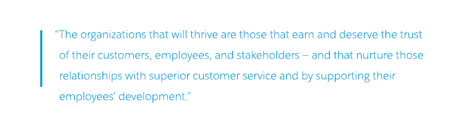 Delegating routine work to machines allows humans to focus on areas where creativity and intuition are needed and that are between disciplines — where innovation actually takes place. For example, with Salesforce collating and analyzing customer data from across our organization, we can gain a 360-degree view of the customer, enabling us to formulate the best solutions and value propositions for our customers.