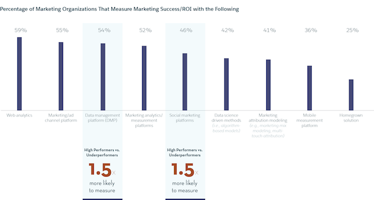 High-performing marketers are 1.4x more likely than underperformers to say traditional approaches to marketing measurement are no longer effective.