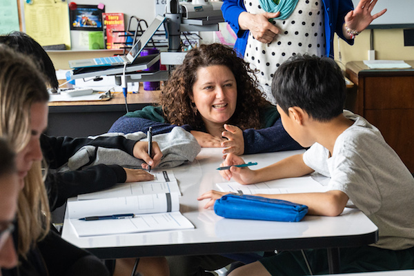 A Salesforce volunteer brainstorming with local students on how to
