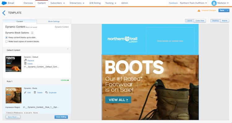 If you can capture shopper zip codes or use IP addresses, you can easily track what the weather looks like where they are, and send out content that connects with them in relevant ways. With Marketing Cloud Live Weather Block, it’s as simple as dragging and dropping a pre-built dynamic content block into your email template and you’re off and running.