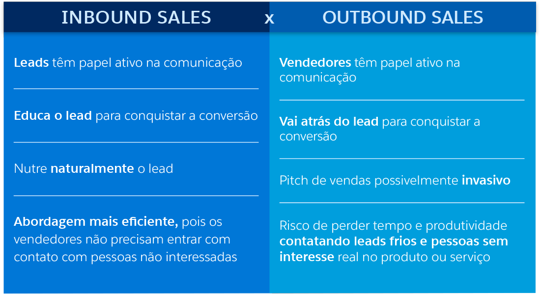 Na verdade, Outbound também pode designar uma metodologia de vendas. Sabe a tradicional ideia do vendedor indo ativamente atrás do cliente em potencial? Isso é o que chamamos de Outbound Sales.