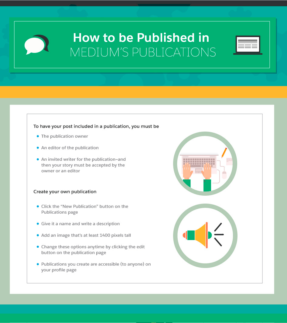Your second option as a writer is to get involved with a publication. You can curate a publication yourself (more on this in the last section), or you can contribute to a preexisting publication of curated stories. In other words, “publications” are pages full of related articles. In order to get your writing in a publication on Medium, the editors have to make you a writer; this means you have to look for contact information on the publication’s homepage. Keep in mind that stories can only be in one publication at a time.
