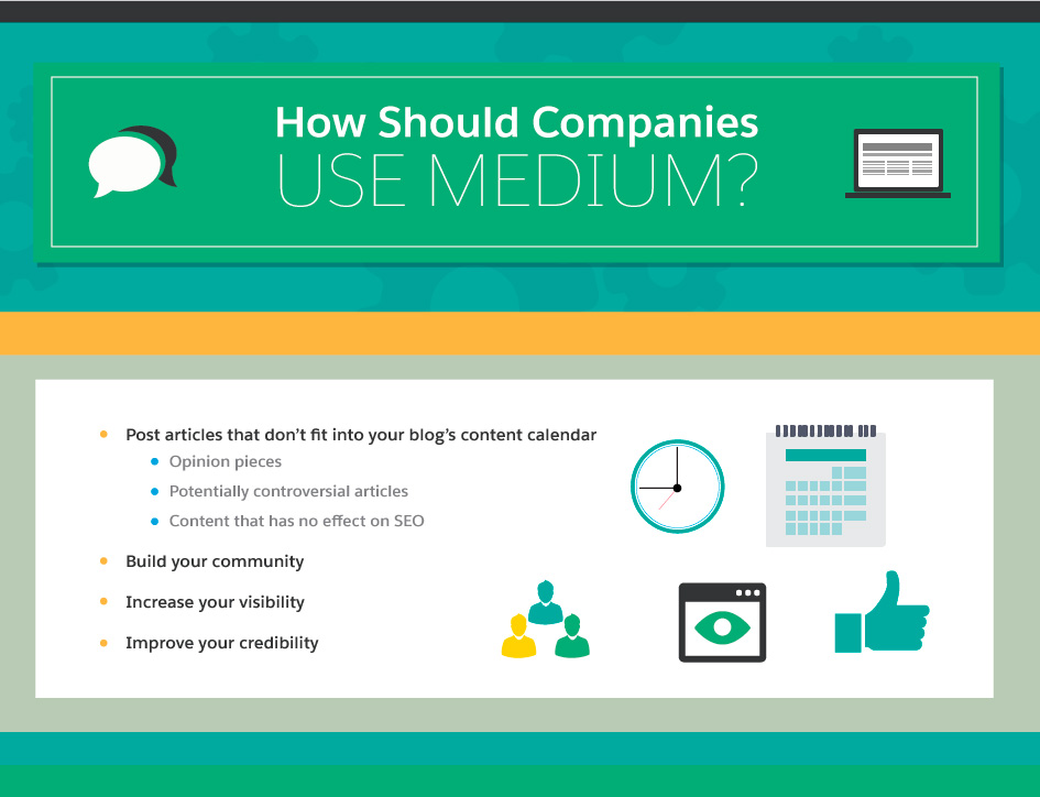 While Medium is great, from an SEO perspective it shouldn’t be used in place of a company blog on your website. Rather, you should focus on using Medium for slightly different benefits: Use it as a place to publish opinion pieces, try out potentially controversial pieces, or write content without worrying about SEO. This will help establish your brand in a different way, and in a different place, which makes it a great supplement.