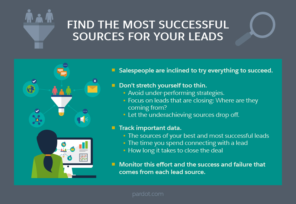 Then, he explains, “In order to be productive in sales, it is vital to track the sources of your best and most successful leads. Understand the time you spend connecting with a lead and eventually closing the deal. Track this effort and the success and failure that comes from each lead source.” This more targeted approach to sales funnel management and optimization may allow you to more strategically allocate your time and effort.