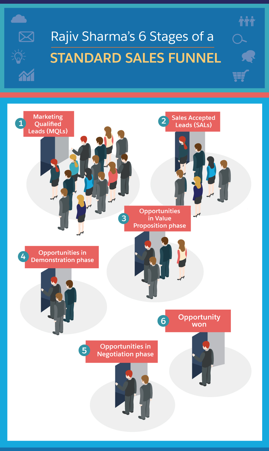 Rajiv Sharma’s 6 Stages of a Standard Sales Funnel