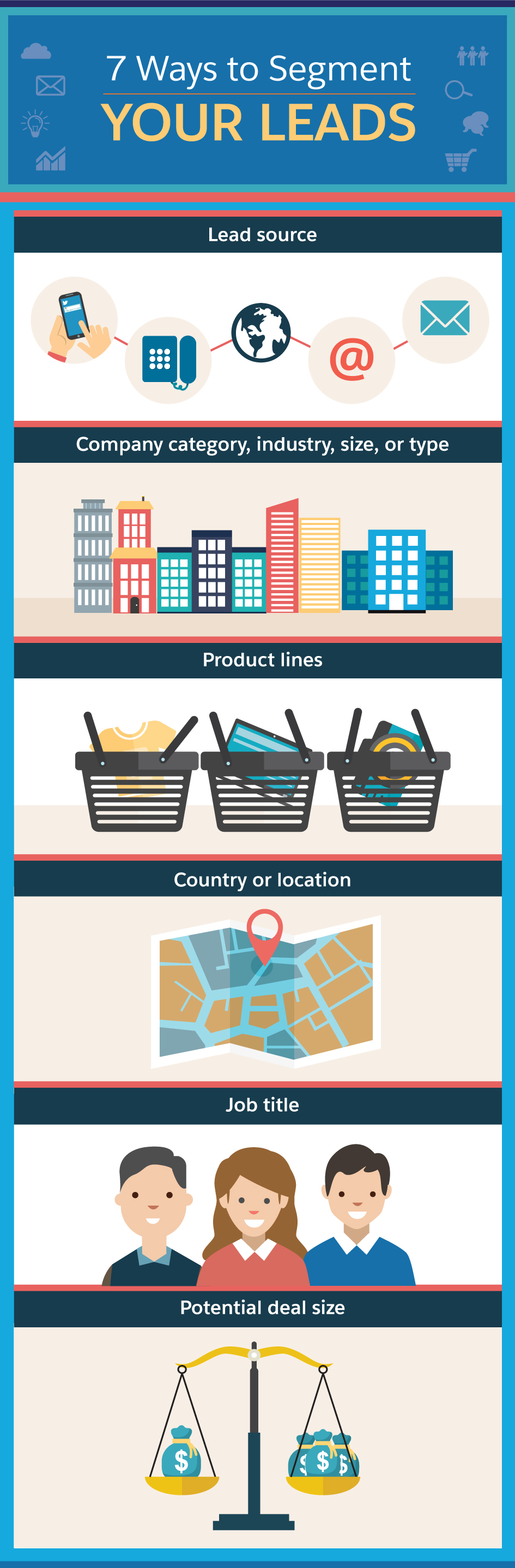 Companies can often sell multiple solutions to the same customer, though that customer may only be interested in one or two of your main offerings. And with each product comes a unique sales pitch. Thus, some leads are best segmented according to the products or services they seek to purchase.
