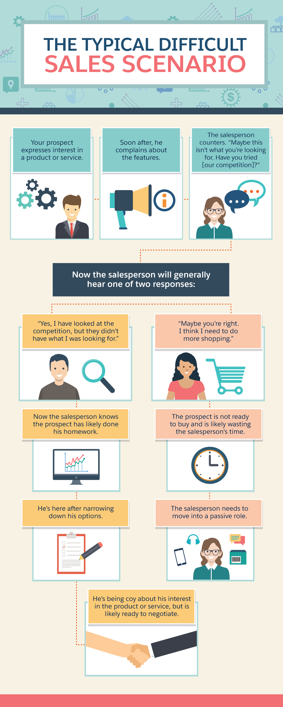 At that point, the prospect will typically say one of two things, both of which alert the salesperson where the potential customer stands in the process: