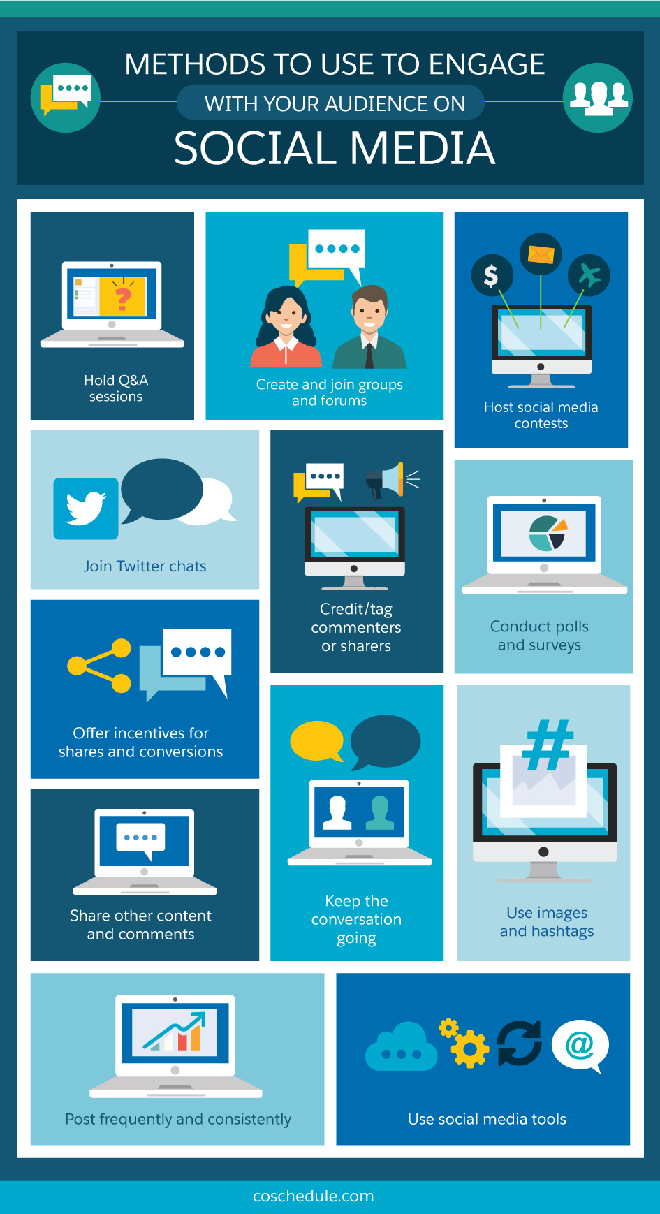 Creating engagement means sparking a conversation with, rather than just talking at, your followers. This takes a clear understanding of the perspectives, pain points, hopes, and priorities of your target market and how your products and/or services fit into their busy lives.
