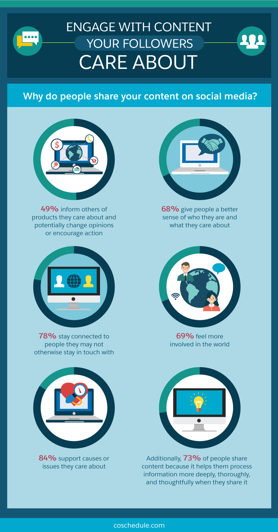 Taking a clear side on any issue is sure to put off some people, but it’s also a great way to showcase your company’s personality in an honest way. It may also help you garner greater loyalty from your true fans. CoSchedule found that 84 per cent of social media users share posts as “a way to support causes or issues they care about.”