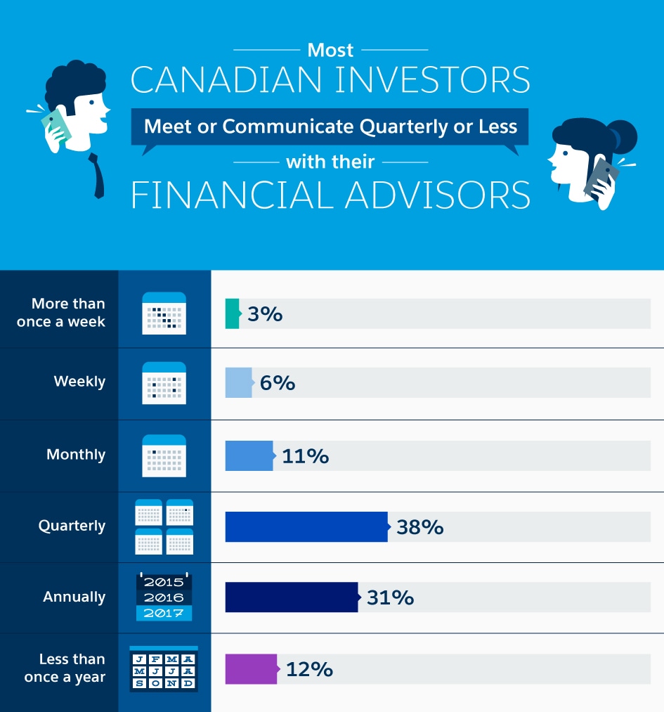 When we asked investors about how they interact with their advisors, we got some surprising responses. For example, 8 per cent of investors don’t know the gender of their advisor, suggesting that all communications had been in writing or through an advising platform. While most investors have more interactions with their advisors, they don’t meet very often. Despite that, most investors are happy with their current advisements.