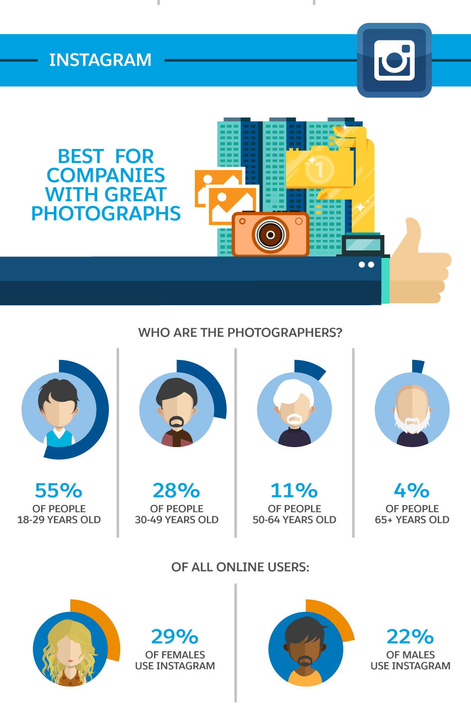 On Instagram, a strong visual identity and high-quality imagery are a must. The site is growing like gangbusters, especially among young, urbanusers. The site pairs well with Facebook and/or Twitter, which allows you to share text-based content that wouldn’t be appropriate on Instagram.