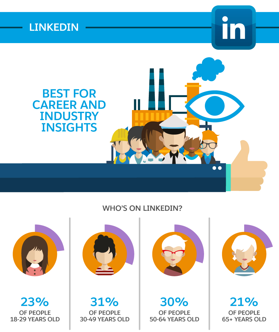 LinkedIn is all about professional networking, which means your brand will appeal to users if you share career and industry insights. LinkedIn is also especially fruitful for B2B companies. Users tend to boast high education levels, high incomes, and a nearly even distribution across age brackets.
