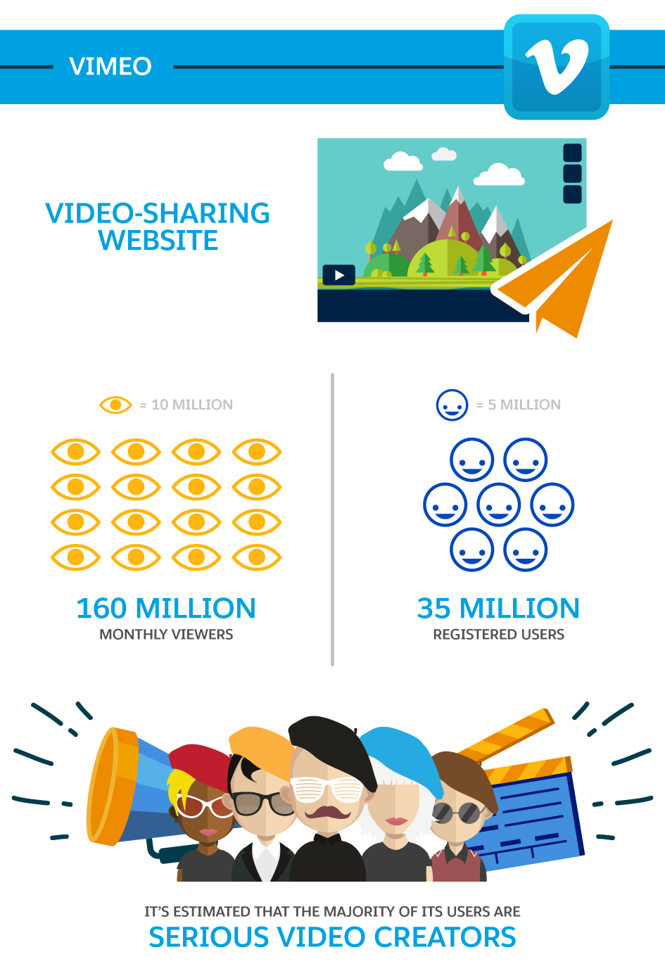Success on this video-sharing site requires polished, high-quality content. If your brand is highly visual, investing time and energy with this platform can be well worth it: With 160 million monthly viewers, Vimeo has the potential to generate a large following.