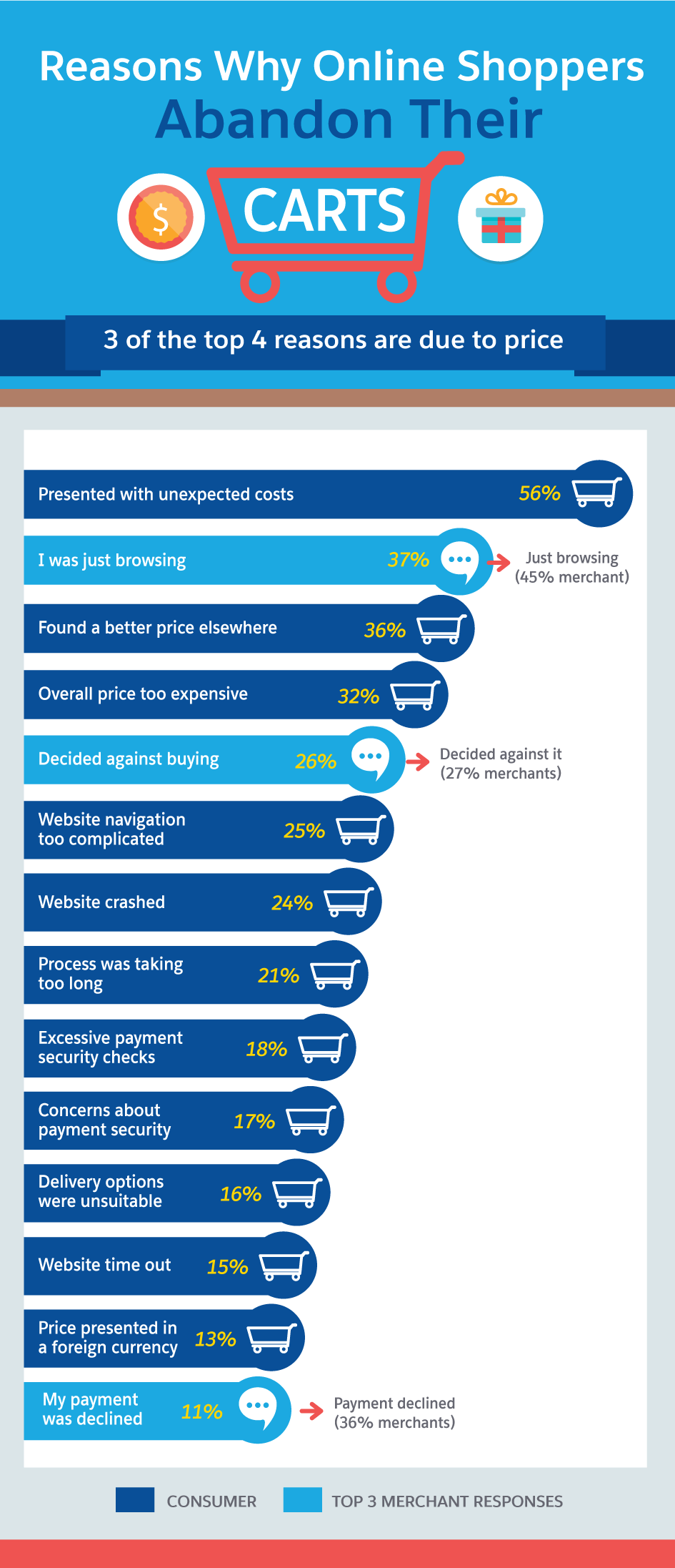 This shows that pricing is one of the biggest reasons why people abandon their shopping carts. So how can you convince these customers to convert? Down-selling by offering discounts is one of the best techniques to turn abandoned carts into actual purchases.