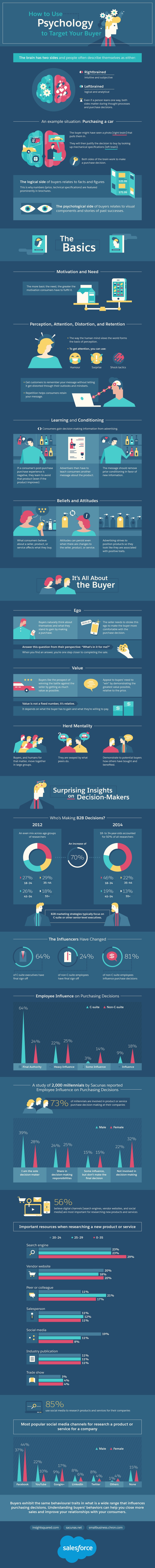 Make sure the buyer knows what they’ll gain when they purchase your products or services. Stroke their ego, show them the value they’ll get, and make sure they know how their peers (and those they look up to) have bought and benefited from your company. Take into consideration the four main types of factors influencing your customers’ behaviours: cultural, social, personal, and psychological. Learn more about the psychology behind your customers’ behaviours in this infographic.