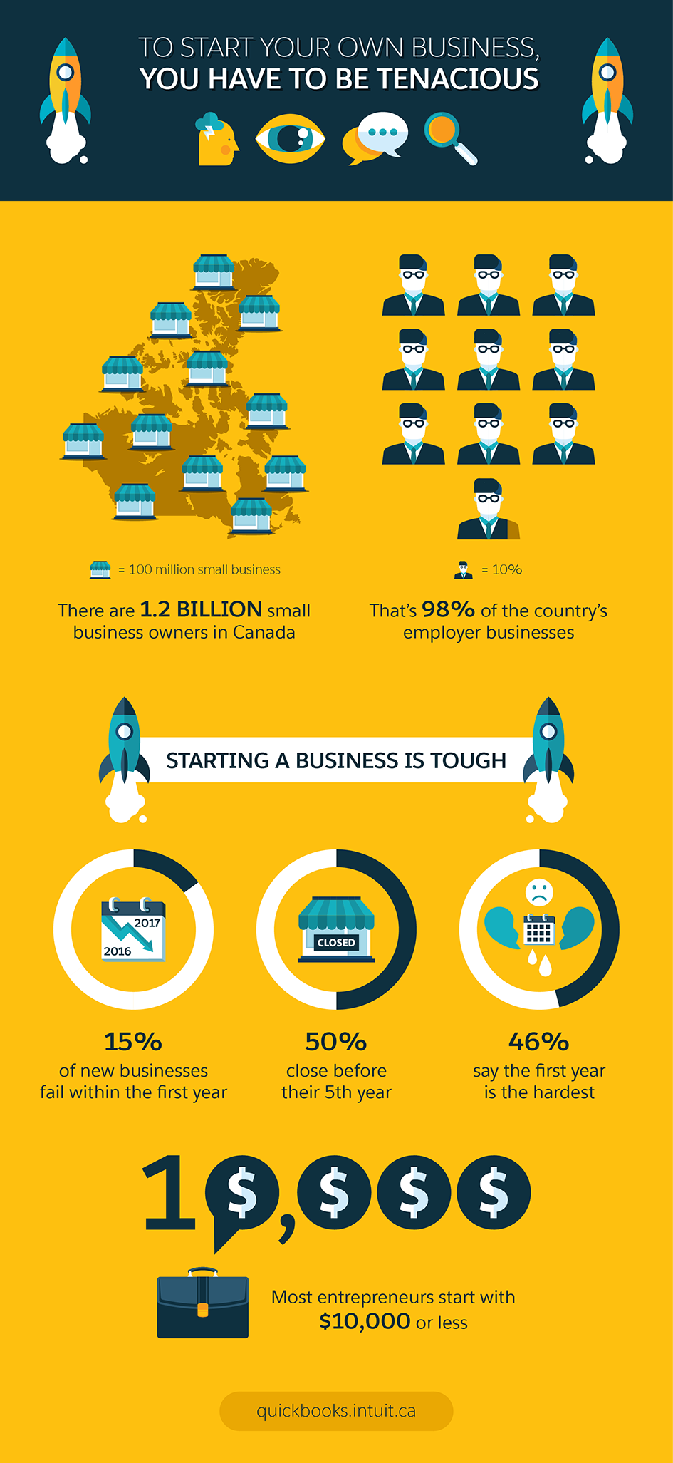 What does it take to be an entrepreneur? Starting a successful business requires more than a good idea: You also need financial backing, support, and a lot of tenacity. It’s not an easy process: About half of Canadian small businesses fail by their fifth year in business.