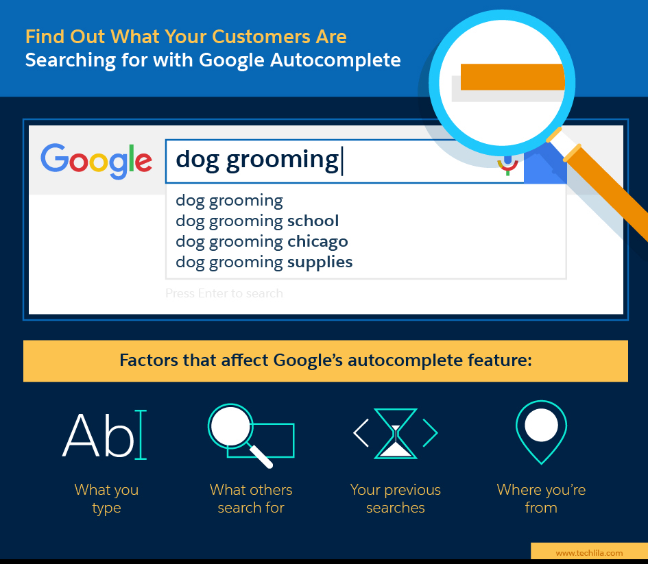 As you type a search query in Google.com, it automatically gives you suggested long-tail phrases to complete your search. While this was built for user convenience, it’s a great tool for people researching keywords because it allows you to get into the minds of what many people are searching. Start by typing in a short-tail keyword phrase and see what the autocomplete results are. There are also autocomplete mining tools out there if you want to automate this process.