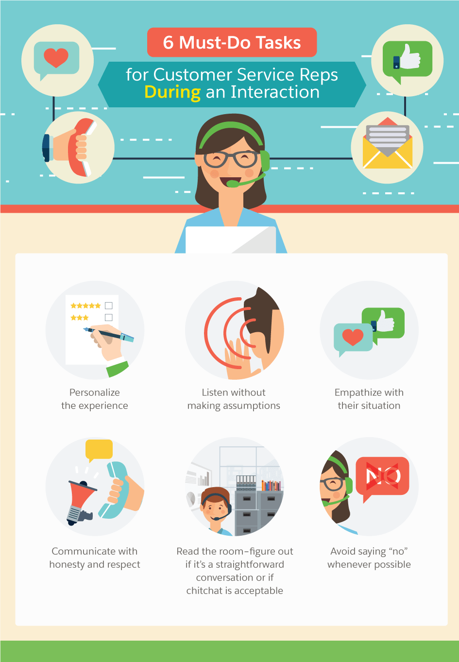 Some customers are happy to talk about the weather or the results of the big game for several minutes before they get to their problems. Some would like to get straight to the point and avoid small talk. Others may start off the conversation in a guarded manner, but respond more openly after being affected by your enthusiasm and proficiency. The point is that being a customer service representative is a bit like being a therapist, and you have to read responses in the moment and analyze how you can best engage with them and exceed their expectations.