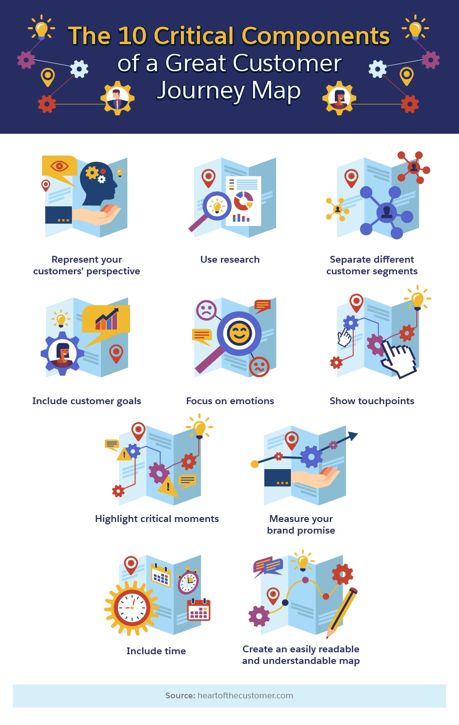 Now that you have a map of one market segment, invest in journey maps for other segments. Keep in mind that the customer journey is constantly changing. Every improvement you make could alter other steps along the way, and changes in technology, the market, and your competition can all affect a customer journey map. Take the time to check back in with customers periodically with additional interviews. Your customers—and your bottom line—will thank you for your efforts.