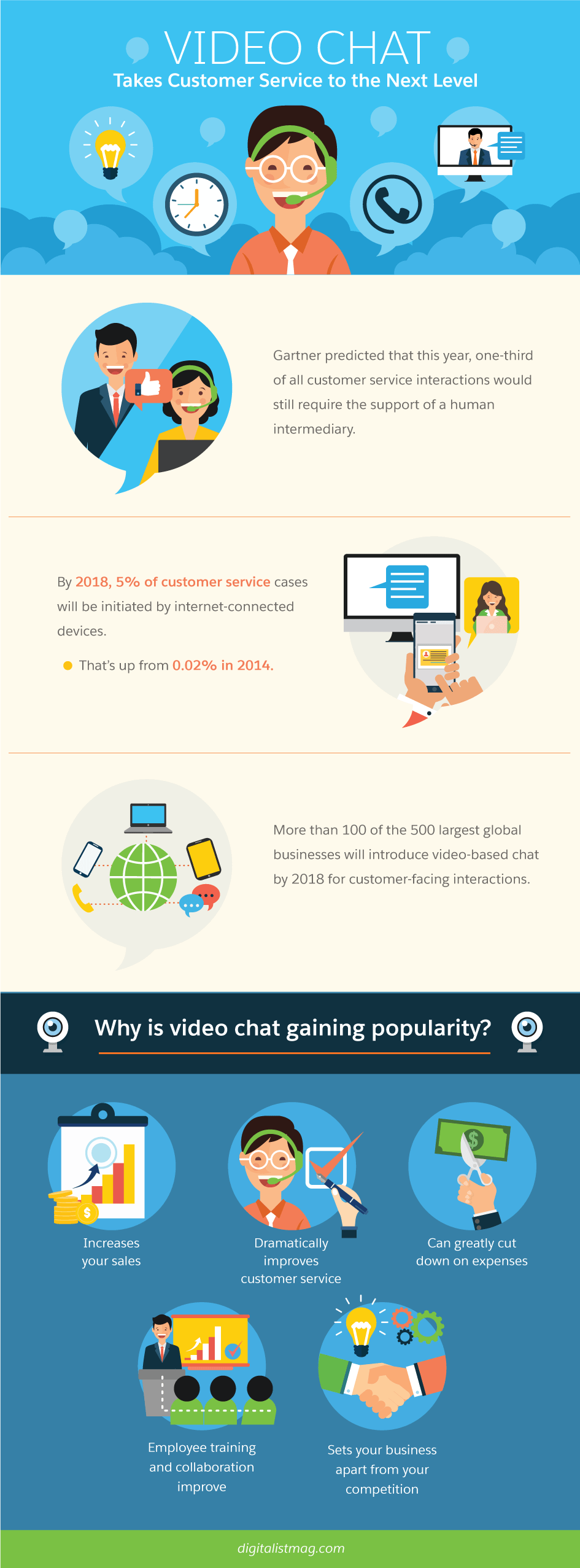 As many businesses take to ecommerce platforms, video chat is a nice option and an excellent compromise between phone and in-person customer support. Video chat also opens up a variety of options in terms of screen sharing, product troubleshooting, visual explanations, and answering customer questions with visual aids, all of which phone support and chat do not allow.