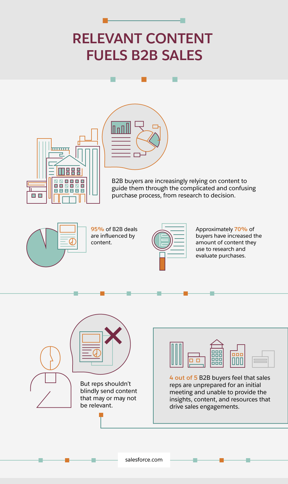 When B2B content initiatives provide real value, they have a positive impact on sales operations. Research indicates that content plays a role in a high percentage of all B2B deals. The results are unambiguous: High-quality content is one of the surest ways to engage prospects at various points of the sales funnel.