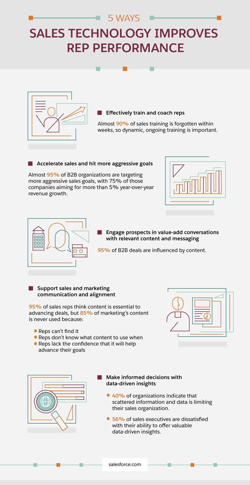 Work with your software vendors to ensure that you and your team have access to the most effective training materials available. Much like you with your customers, your vendors should want you to succeed with their product, so they should be eager to share tips and materials for how you can get the most out of your sales technology investment. It’s up to you to take advantage of them.