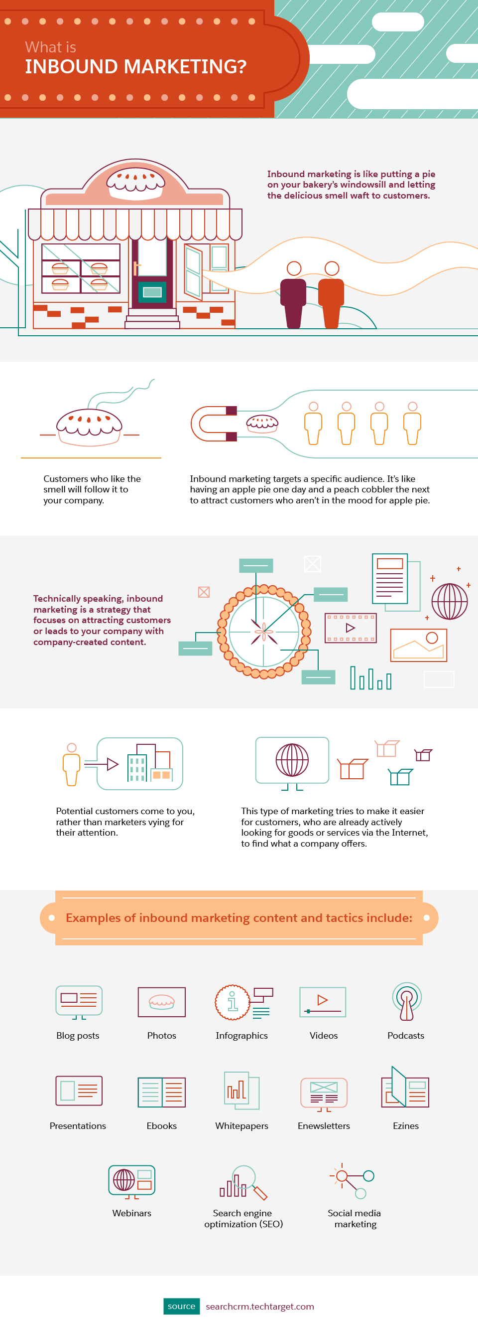 At its simplest, inbound marketing is a method that entices potential customers to come to you. It’s like baking a delicious pie and putting it on your bakery’s windowsill so that the scent wafts through the neighborhood and brings everyone to your door.